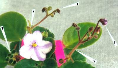 3.) Aborted flower bud on secondary bloom stalk.